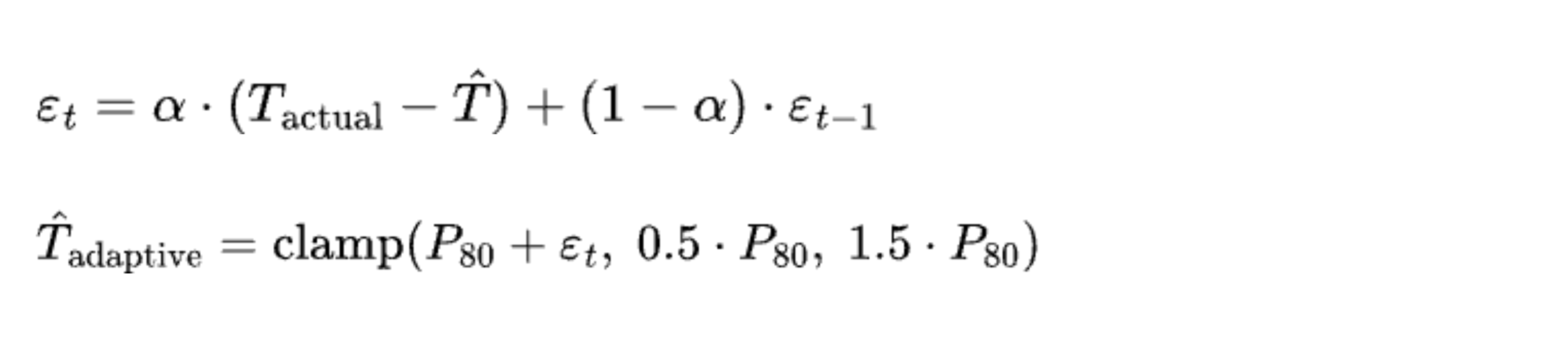 As task mix and provider limits change, PP80 predictions shift. We layer an exponential moving average to track system prediction error: